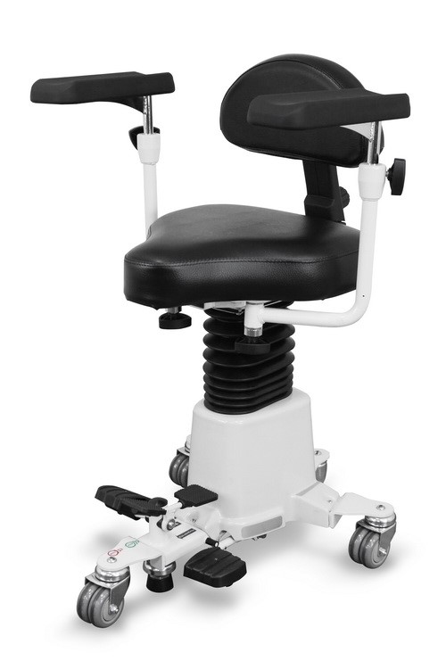 - Foot-controlled, hydraulic, three-spindle base.